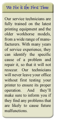 Epson, NEC and Brother and authorized service center for HP, Xerox,